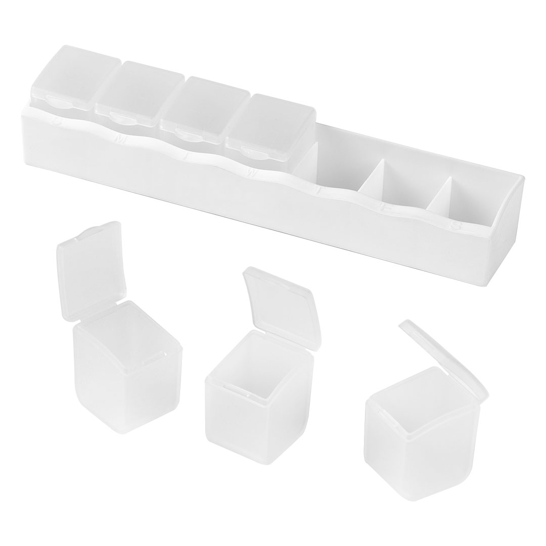 CLINIC je plastična kutijica sa 7 odvojivih odeljaka za organizaciju lekova, vitamina i ostalih suplemenata po danima, dizajnirana da olakša praćenje terapije i pravilno konzumiranje. Pregledan raspored sa jasno označenim danima omogućava lakšu i sigurniju upotrebu, kako kod kuće, na poslu, tako i tokom putovanja. Laka je za korišćenje i praktična za svakodnevnu rutinu, što je čini korisnim i funkcionalnim promotivnim proizvodom za kampanje u zdravstvenom i wellness sektoru.